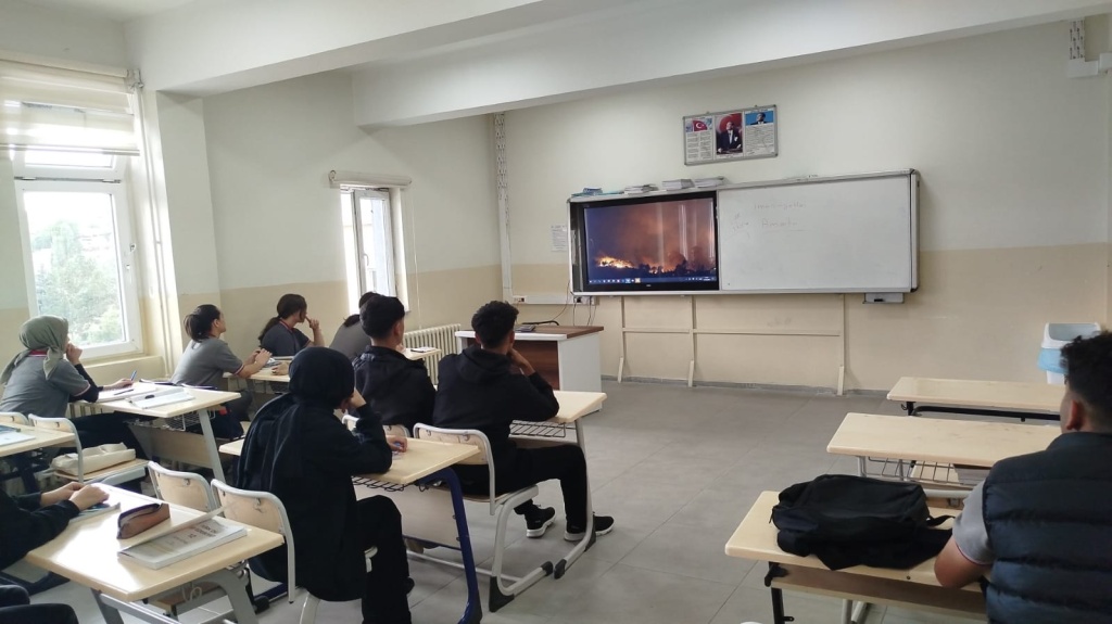 Bakanlığımız tarafından hayata geçirilen Türkiye Yüzyılı Maarif Modeli eğitim vizyonunda, erdem–değer–eylem eksenindeki temel ilkeler doğrultusunda öğrencilerde toplumsal ve çevresel duyarlılığın geliştirilmesi hedeflenmektedir. Bu kapsamda, 2025–2026 eğitim öğretim yılının ilk haftasında; doğa sevgisini pekiştirmek, çevreye karşı sorumluluk bilincini güçlendirmek ve Yeşil Vatan farkındalığını artırmak amacıyla çeşitli etkinlikler gerçekleştirilecektir. Tercan Anadolu Lisesi öğrencileri, öğretmenleriyle beraber Milli Eğitim Bakanlığının yayınlamış olduğu orman yangınları ve doğayı koruma videosunu izledi ve konu hakkında bilgilendi.